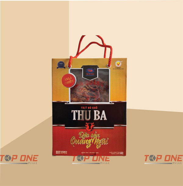 Hộp giấy đựng bò khô là một sản phẩm đang ngày càng trở nên phổ biến trên thị trường hiện nay. Không chỉ đáp ứng nhu cầu bảo quản và vận chuyển thực phẩm một cách an toàn, mà nó còn thể hiện sự tinh tế trong thiết kế và tính năng sử dụng. Qua bài viết này, hãy cùng Xưởng in Top One khám phá những đặc điểm nổi bật của hộp giấy đựng bò khô, cũng như các thông tin liên quan để hiểu rõ hơn về sản phẩm này.