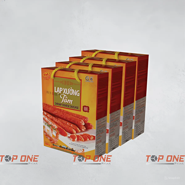 Hộp giấy đựng lạp xưởng đang trở thành một giải pháp đóng gói phổ biến trong ngành thực phẩm hiện nay. Với sự gia tăng nhu cầu về sản phẩm tự nhiên và thân thiện với môi trường, hộp giấy không chỉ giúp bảo vệ chất lượng lạp xưởng mà còn góp phần nâng cao giá trị thương hiệu cho các doanh nghiệp. Bài viết này Xưởng in Top One sẽ đi sâu vào việc tìm hiểu hộp giấy đựng lạp xưởng, đặc điểm nổi bật của nó cũng như những ưu và nhược điểm của hộp giấy đựng lạp xưởng này.